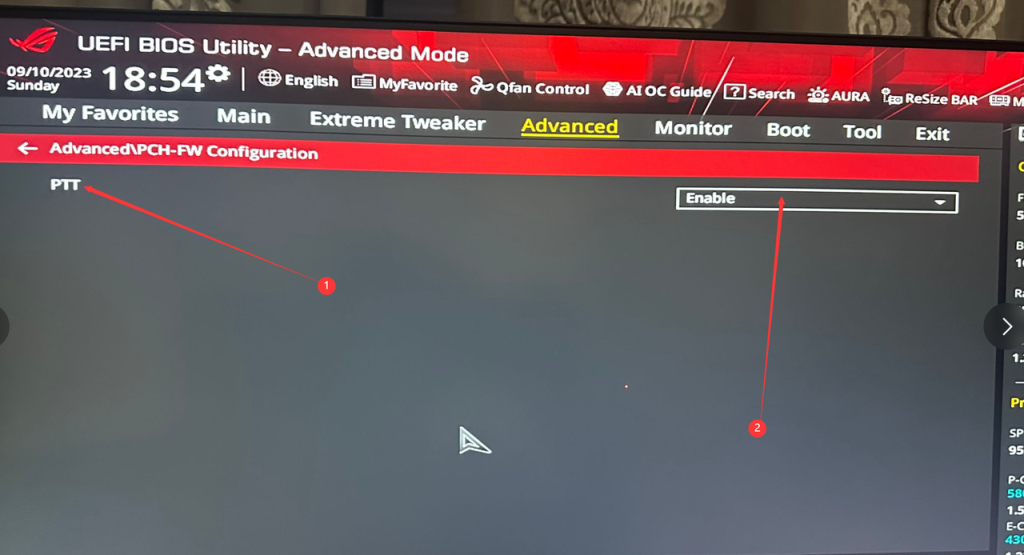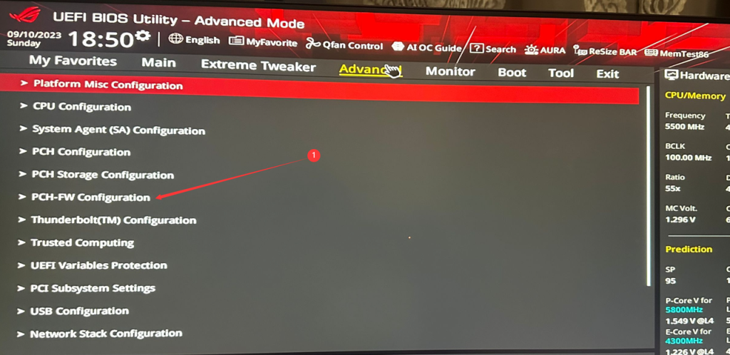4:点进PCH-FW这个,然后把PTT改成DISABLE(安全启动关闭)