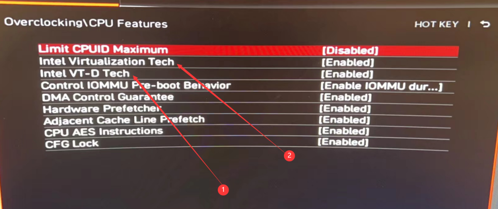 需要关闭主机的主板虚拟化,安全启动,VT-D(不同主板请对照下面设置)